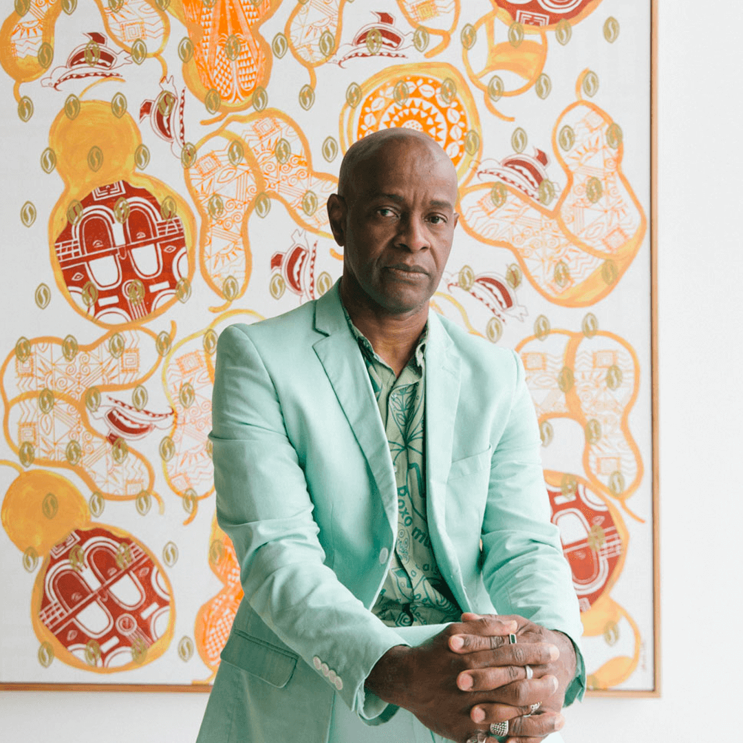 Alberto Pitta’s work is centered on textile printing and serigraphy, although he has also dedicated himself to painting and sculpture in recent years. With a career spanning more than four decades, Alberto Pitta’s production is closely linked to popular festivities and in dialogue with other languages, such as fashion and dance, his work has a strong public dimension, having created prints for Afro carnival blocks such as Olodum, Filhos de Gandhy and his own, Cortejo Afro.