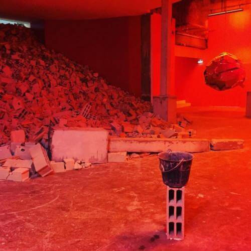 Trois installations vidéo conçues pour l’exposition présentent respectivement le jardin qui accueillait les « zoo humains » pendant l’exposition coloniale de 1907, des œuvres traitant du corps meurtri et une interview de Winnie Mandela (née en 1937) rejouée par l’artiste. Des fuites d’eau, au goutte-à-goutte entêtant, laissent présager une inondation imminente, tandis que les formes de ruines et d’éboulements traduisent l’effondrement psychique et la chute des structures de domination.
