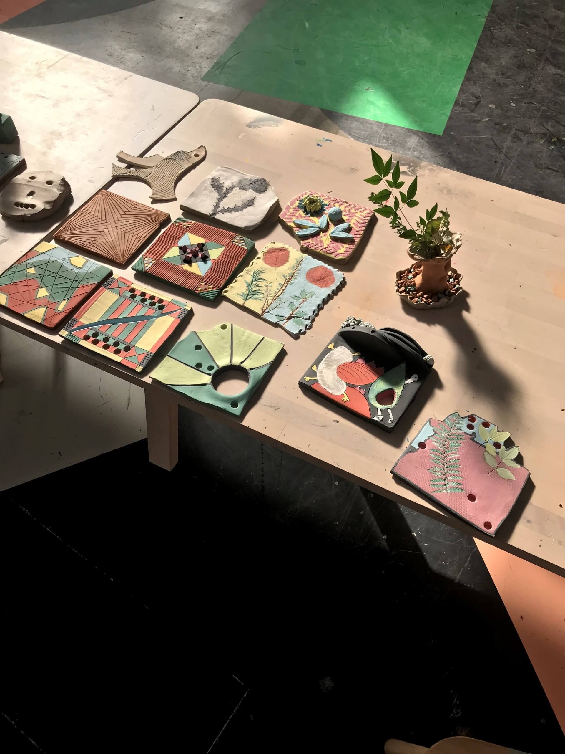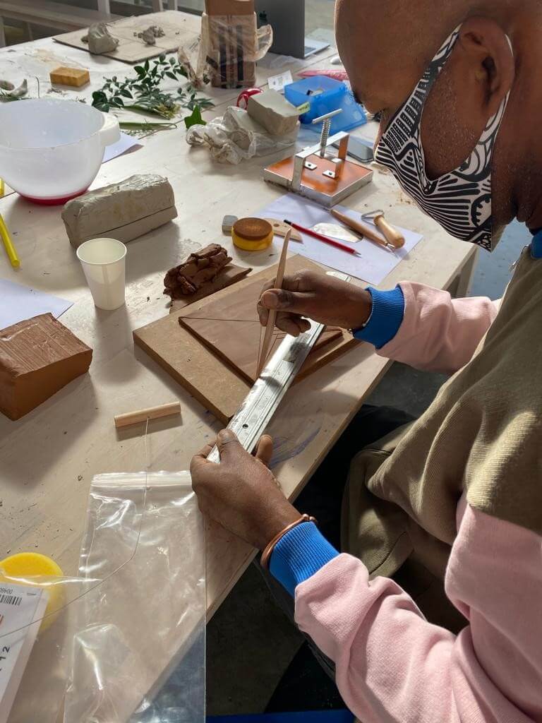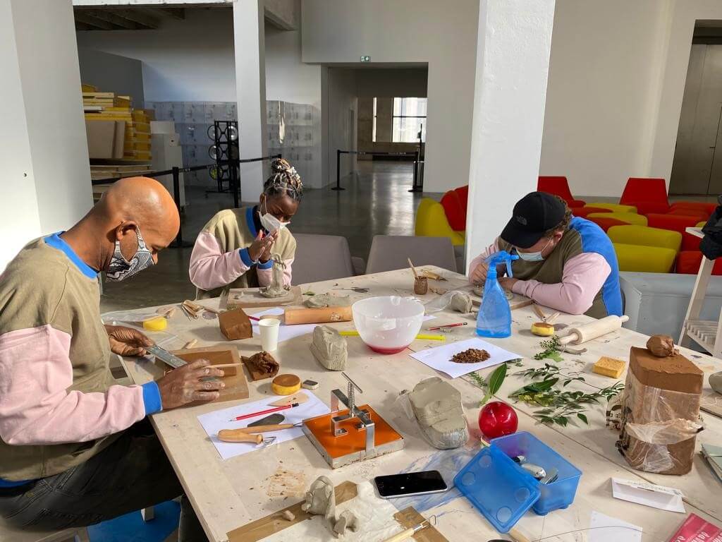Dans le cadre du programme Y·A·C·M·É 2021, Carla Barkatz a pensé un atelier de céramique pour des familles accompagnées par l’association d’Entraide Francilienne 93/94. Chaque famille a été invitée à imaginer, sur un carreau de céramique, différentes empreintes, témoins de leur récit et des liens qui les unissent.