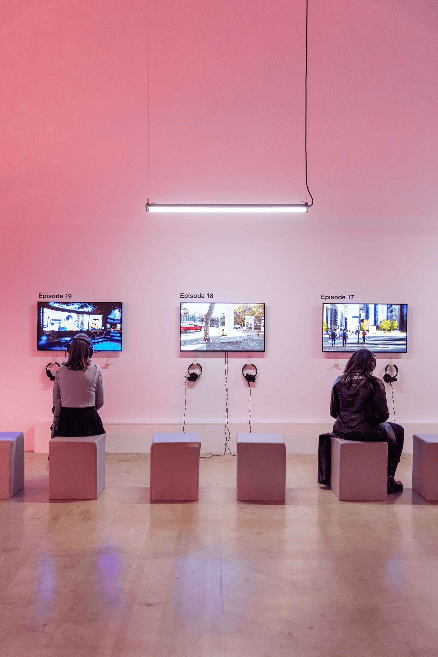 LRD : C’est tout simplement parce que c’est tellement long à visionner que ce serait très injuste pour les gens ne pas pouvoir regarder potentiellement l’intégralité. On a donc imaginé cet espace comme un espace de vidéo consultation, pour que les gens puissent s’installer, traîner, venir peut-être sans but réel. En tout cas, sans forcément dans le but d’aller voir une oeuvre d’art ou une grande exposition. C’était aussi un peu pour casser ce truc.