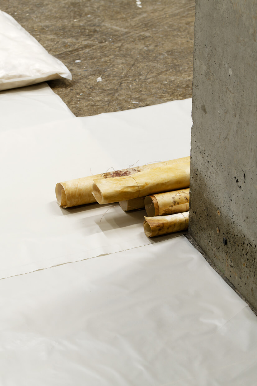 mountaincutters : Il a été important pour nous de nommer l’entité que nous formons. Nous avons travaillé ensemble aux Beaux-arts de Marseille pendant cinq ans et nous avons passé nos diplômes de troisième et de cinquième années en duo. Cela a commencé assez tôt et nous n’avons pas eu de pratique artistique individuelle. Nous avons donc eu besoin de nommer cette pratique. Celle de deux corps réalisant des gestes différents, complémentaires. La partie « mountain » est liée à la géologie, au sol, à ce qui nous tient debout. C’est le contexte, l’environnement. Et la partie « cutters » est quant à elle plutôt liée au geste, à l’action, au fait d’être actif·ve dans cet environnement. Ce nom a aussi été important par rapport à l’école dans laquelle nous étions, imbriquée dans les Calanques de Marseille, dans le parc national qui est très blanc, très minéral. La géologie, le minéral, ont été très importants dans notre travail. Au début, on allait beaucoup arpenter les lieux à l’extérieur. Nous allions creuser et mouler des trous que l’on ramenait dans l’atelier. Nous avions aussi envie que notre nom parle à tout le monde. C’est pour cette raison que nous avons choisi l’anglais. Cela permettait aussi qu’il ne soit ni féminin ni masculin, qu’il reste anonyme.