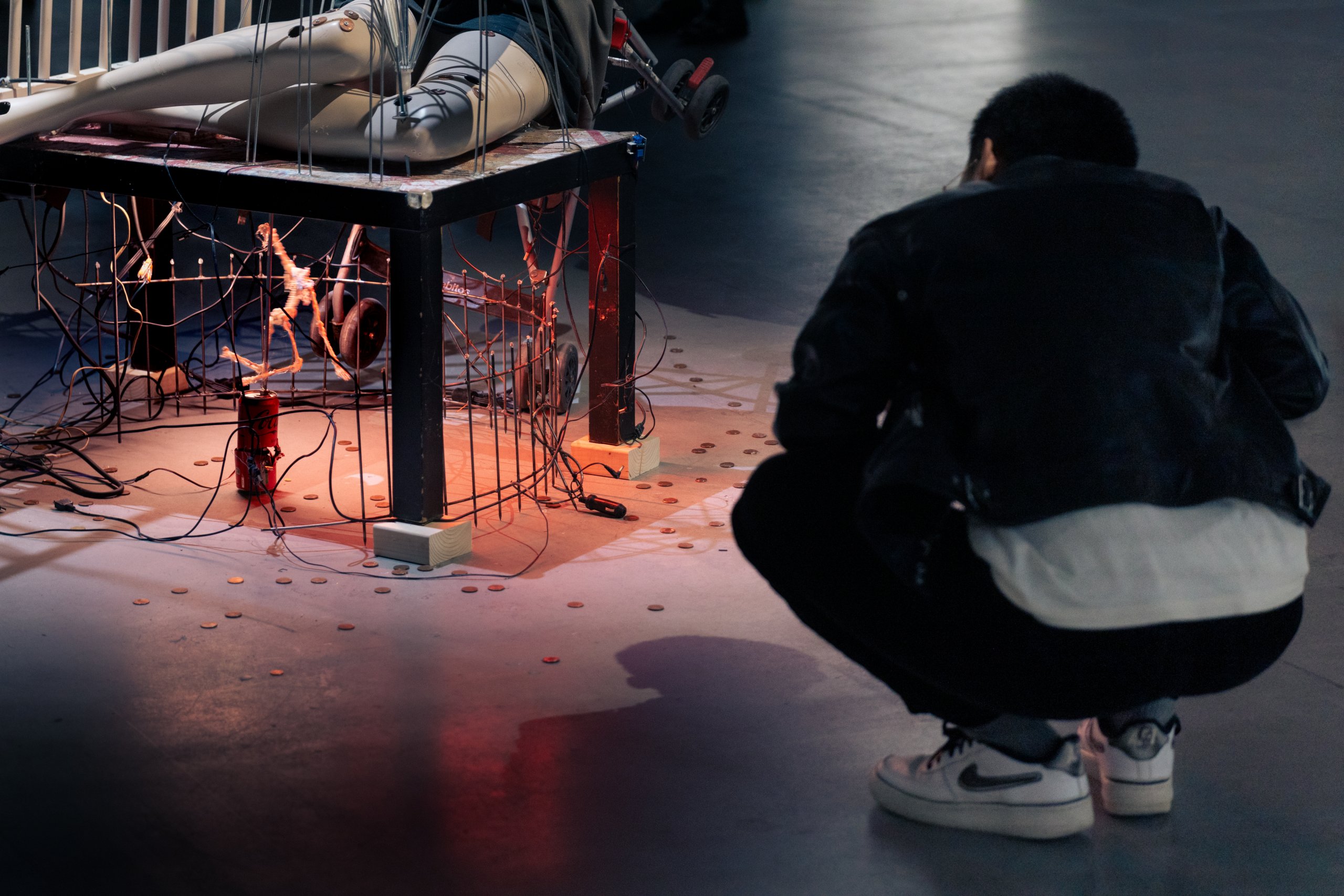 VDA & CR : L’élaboration de la Friche et de l’exposition repose d’abord sur une méthodologie de l’écoute afin de ne pas anticiper trop à l’avance les besoins des artistexs que nous invitons. La conception de l’espace et les quelques rencontres prévues avec le public sont orientées par la demande des artistexs de se retrouver dans un lieu sain et bienveillant, plutôt que productiviste et aliénant. En tant que curateur·rices du projet, nous ressentons aussi le besoin de se laisser affecter par les travaux, par les artistexs et par les corps présents, et de ne pas forcément avoir de réponses.